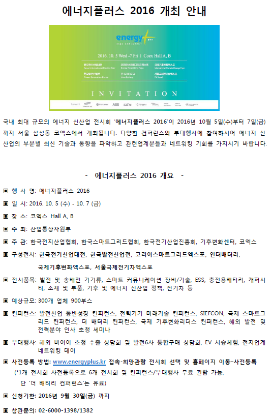 [산업통상자원부] 에너지플러스 2016 개최 안내