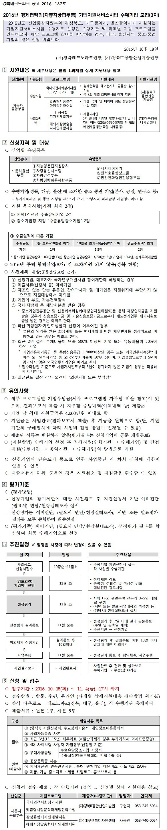 [경북TP] 2016년 경제협력권(자동차융합부품) 기업지원서비스사업 수혜기업 모집(3차)