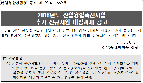 2016년도 산업융합촉진사업 추가 신규지원 대상과제 공고문.hwp |