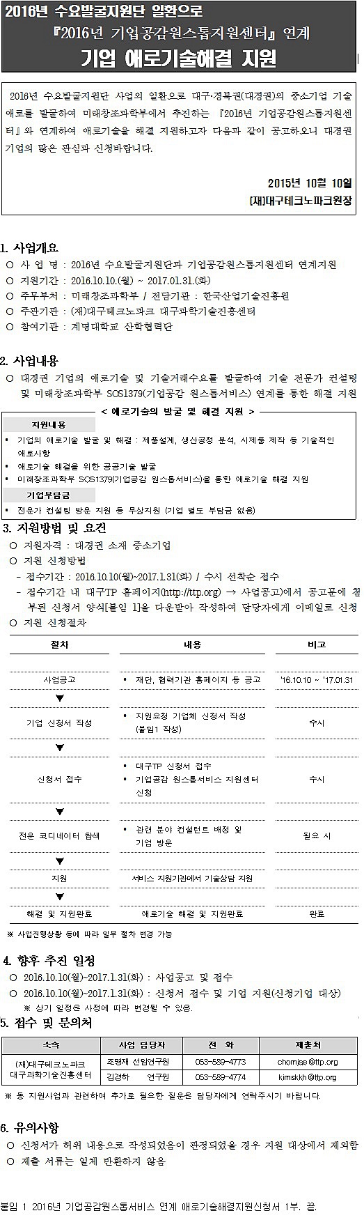 [대구TP] 2016년 기업공감원스톱지원센터 연계 기업 애로기술해결 지원 계획 공고