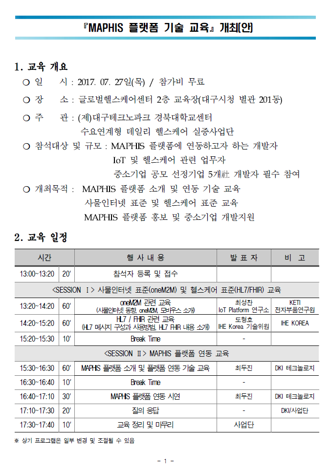 [대구TP] 글로벌헬스케어센터 개방형 헬스케어 플랫폼 연동 기술 및 관련 국제표준 교육 안내