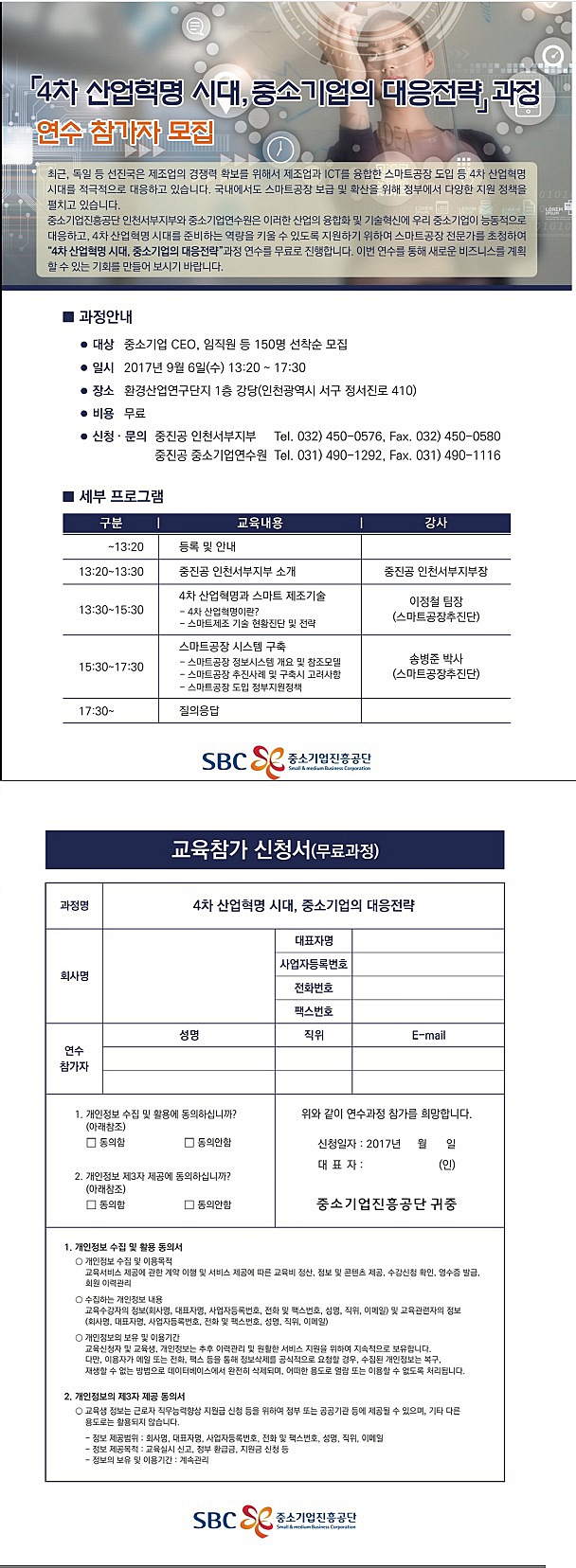 [중소기업진흥공단] "4차 산업혁명 시대, 중소기업의 대응전략" 과정 연수참가자 모집