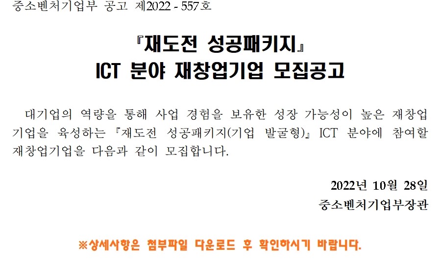 (제2022-557호)_재도전성공패키지_ICT_분야_재창업기업_모집공고.hwpx