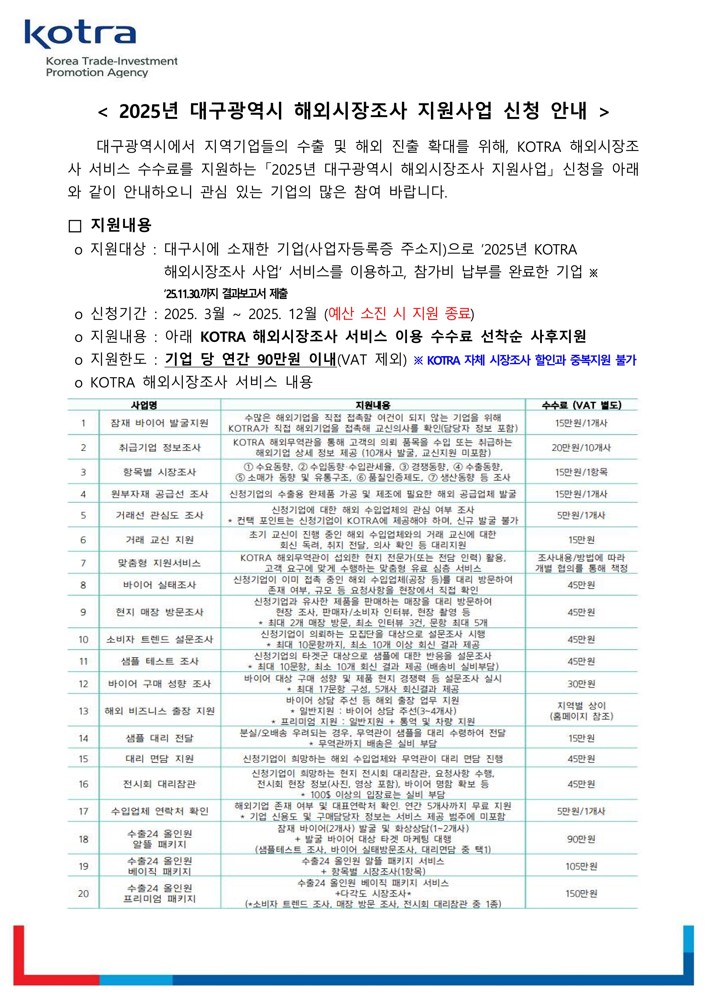 [KOTRA] 2025 KOTRA해외시장조사 참가 지원사업 (~예산 소진 시)