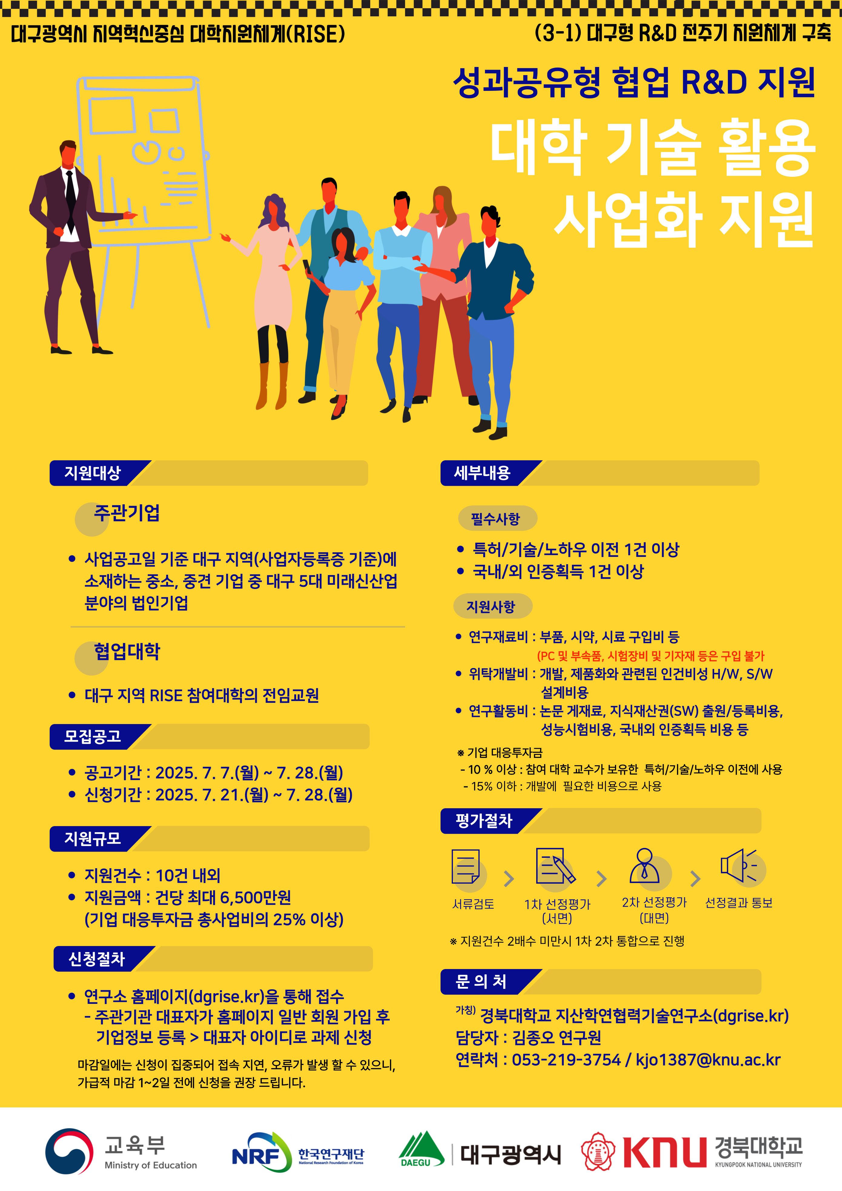 | 제목 | [경북대 지산학협력기술연구소] 「대구형 R&D 전주기 지원체계 구축」 대학 기술 활용 사업화 지원사업 (~ 25. 7. 28.) | ||||