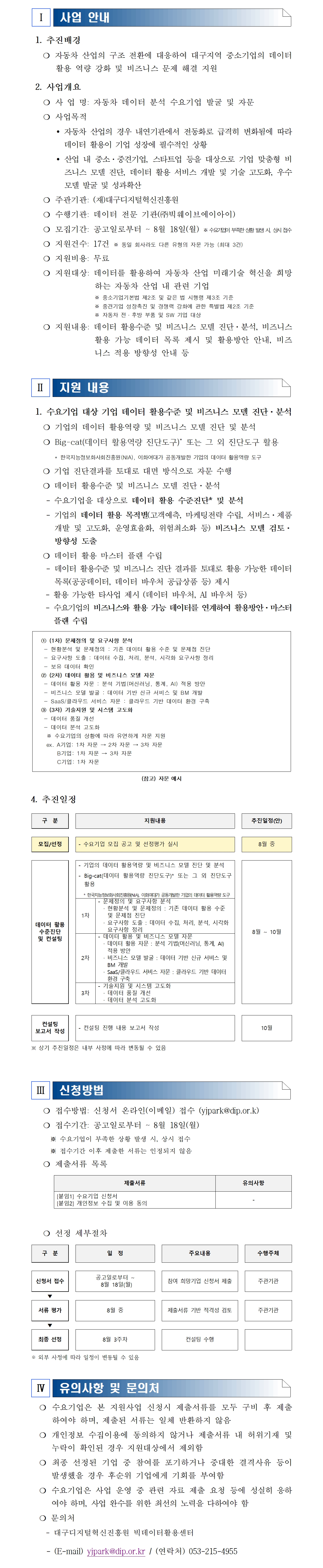 [대구디지털혁신진흥원] 『자동차 데이터 분석 수요기업 발굴 및 자문 사업』 수요기업 모집 공고 (~8/18)