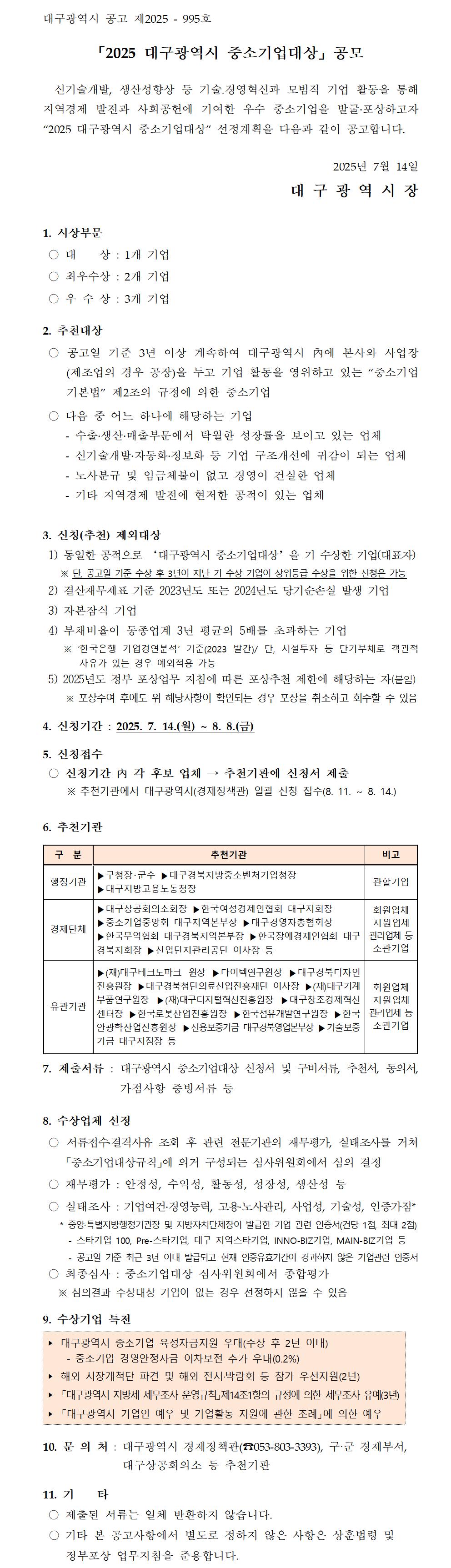 첨부2. 2025 대구광역시 중소기업대상 공고문(2025-995호).hwp