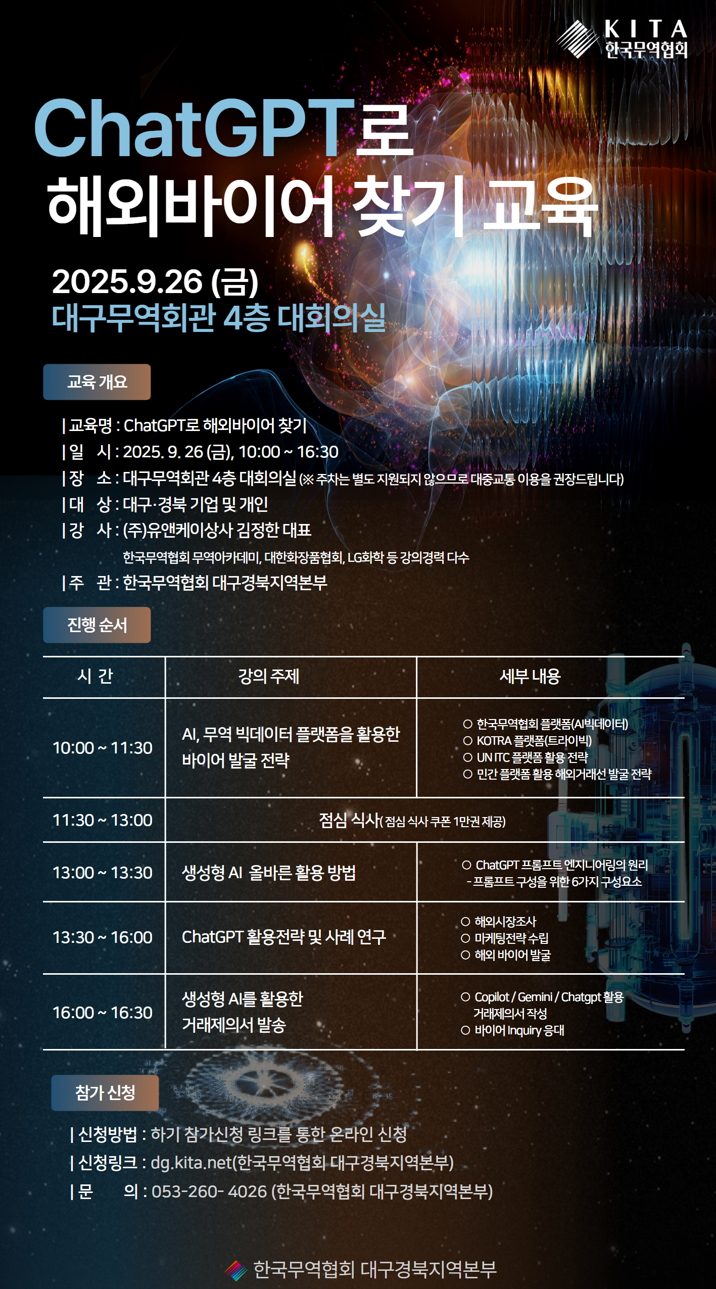 [한국무역협회 대구경북지역본부] AI활용(챗GPT로 해외바이어 찾기) 교육 개최 (9/26, 금)
