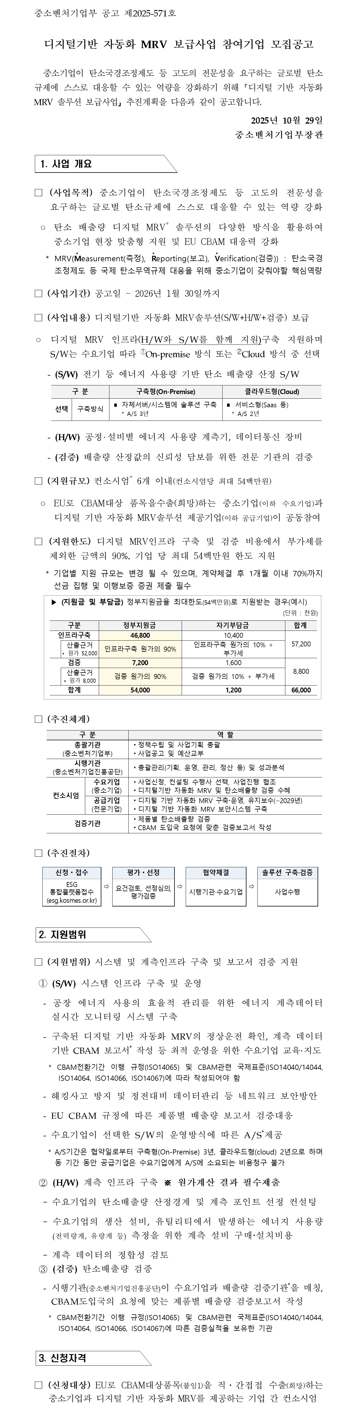 [중소벤처기업진흥공단] 디지털기반 자동화 MRV 보급사업 2차 모집안내 (~11/13)