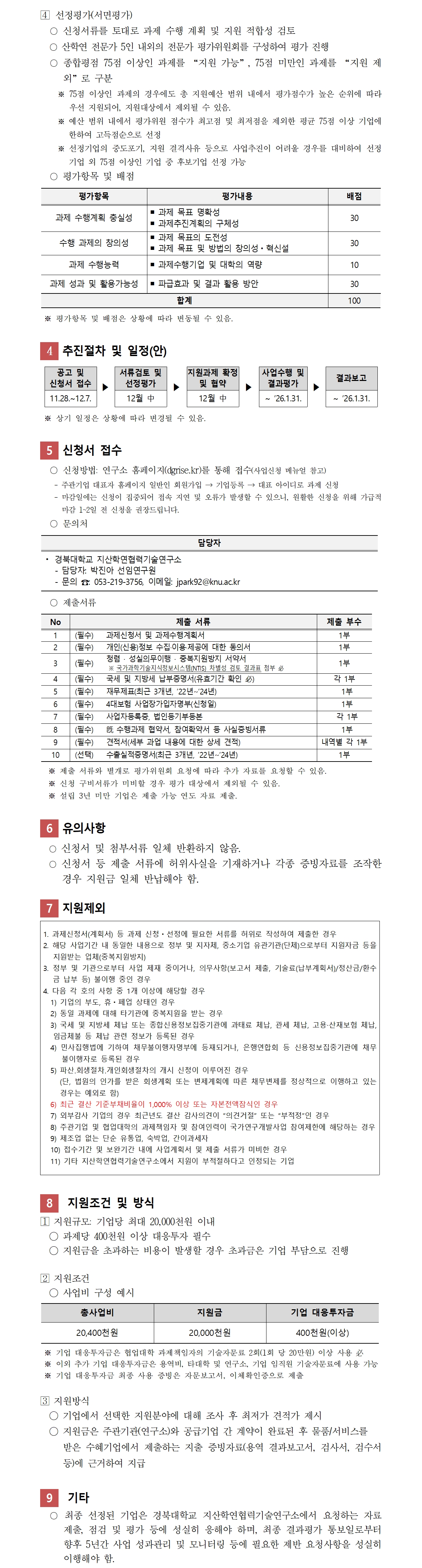| 제목 | [경북대학교 지산학연협력기술연구소] 「R&D 성과확산 후속개발 기획 지원」 사업 모집 공고(~12/8) | ||||