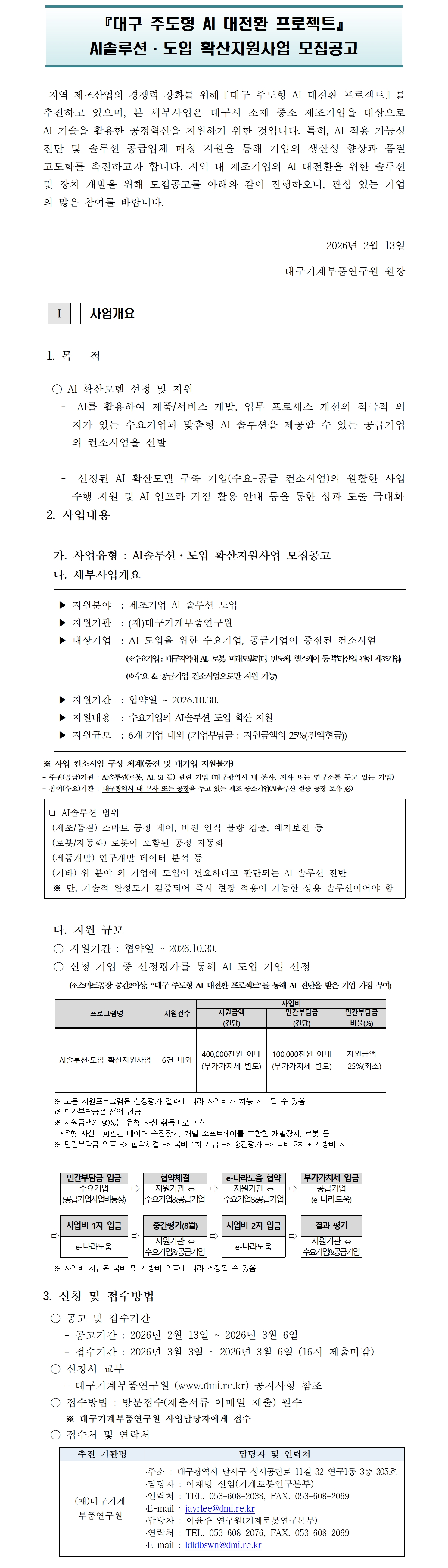[대구기계부품연구원] 『대구 주도형 AI 대전환 프로젝트』AI솔루션·도입 확산지원사업 모집공고(~3/6)