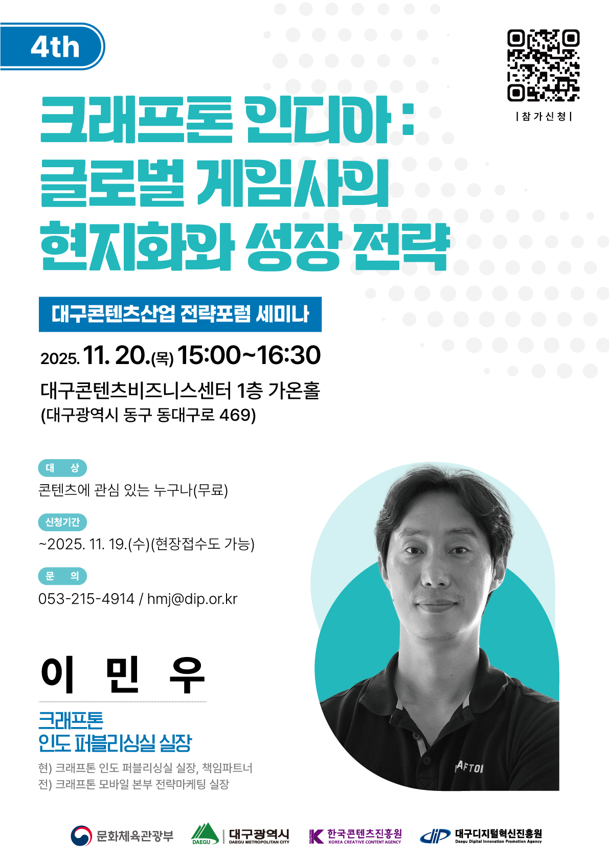 [DIP] 2025년 대구콘텐츠산업 전략포럼 세미나(4회차) 안내 (11/20)