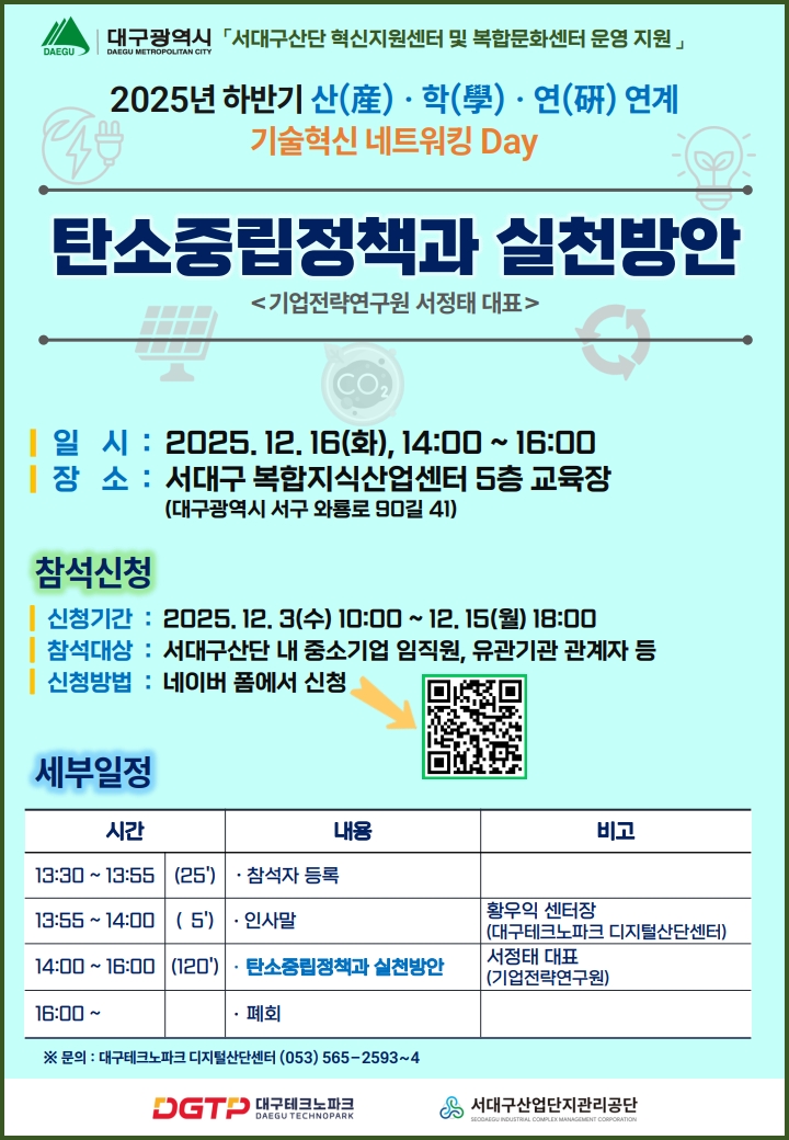 [대구테크노파크] "2025년 하반기 산학연 연계 기술혁신 네트워킹 Day" 12/16(화)