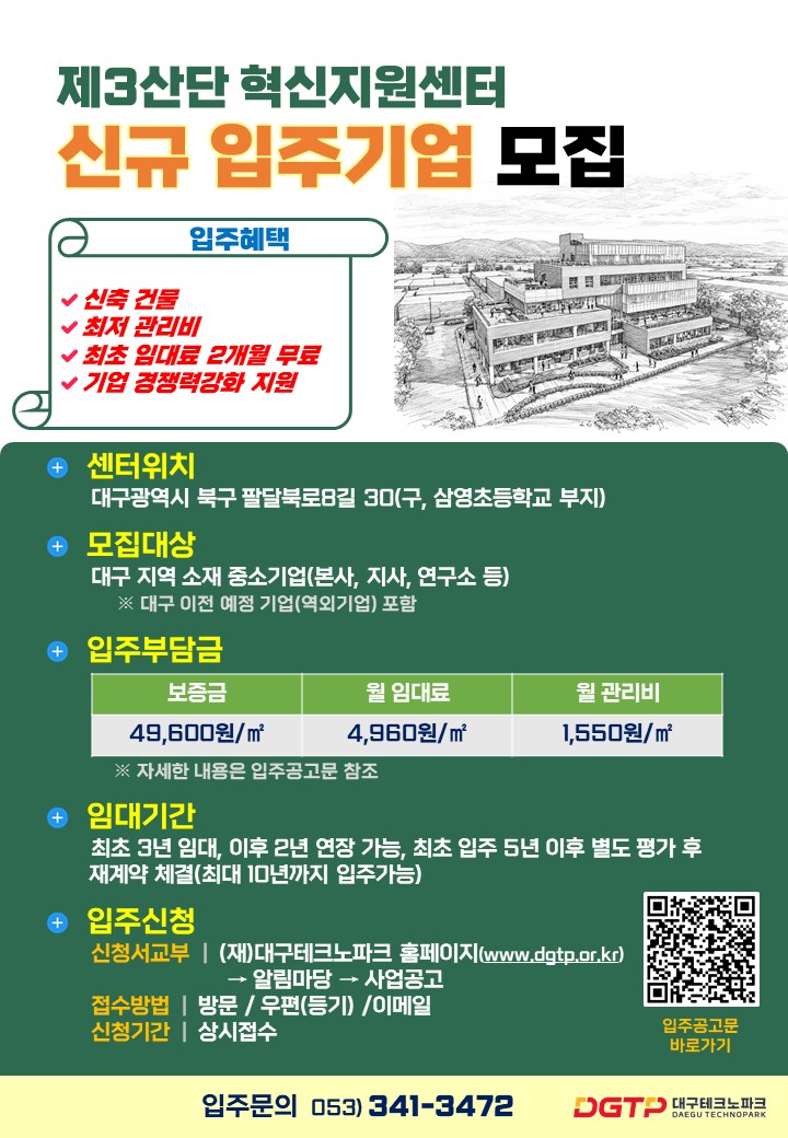 [대구테크노파크] 제3산단 혁신지원센터 신규 입주기업 모집 안내